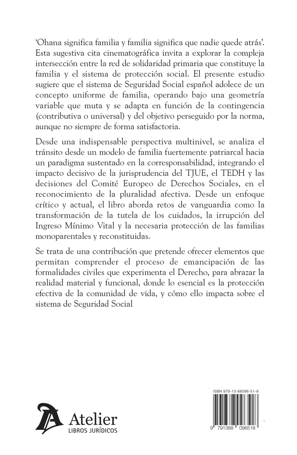 Desde una perspectiva multinivel, la obra analiza la evolución desde un modelo familiar de corte patriarcal hacia un paradigma basado en la corresponsabilidad, incorporando el impacto decisivo de la jurisprudencia del Tribunal de Justicia de la Unión Europea, del Tribunal Europeo de Derechos Humanos y de las decisiones del Comité Europeo de Derechos Sociales en el reconocimiento de la pluralidad de formas de convivencia y vínculos afectivos. Con un enfoque crítico y actual, el libro aborda además algunos de los principales retos contemporáneos, como la transformación de los sistemas de cuidados, la consolidación del Ingreso Mínimo Vital y la necesaria protección de las familias monoparentales y reconstituidas. En definitiva, se trata de una obra que contribuye a comprender el proceso de adaptación del Derecho hacia una concepción material y funcional de la familia, centrada en la protección efectiva de la comunidad de vida y en su proyección dentro del sistema de Seguridad Social.