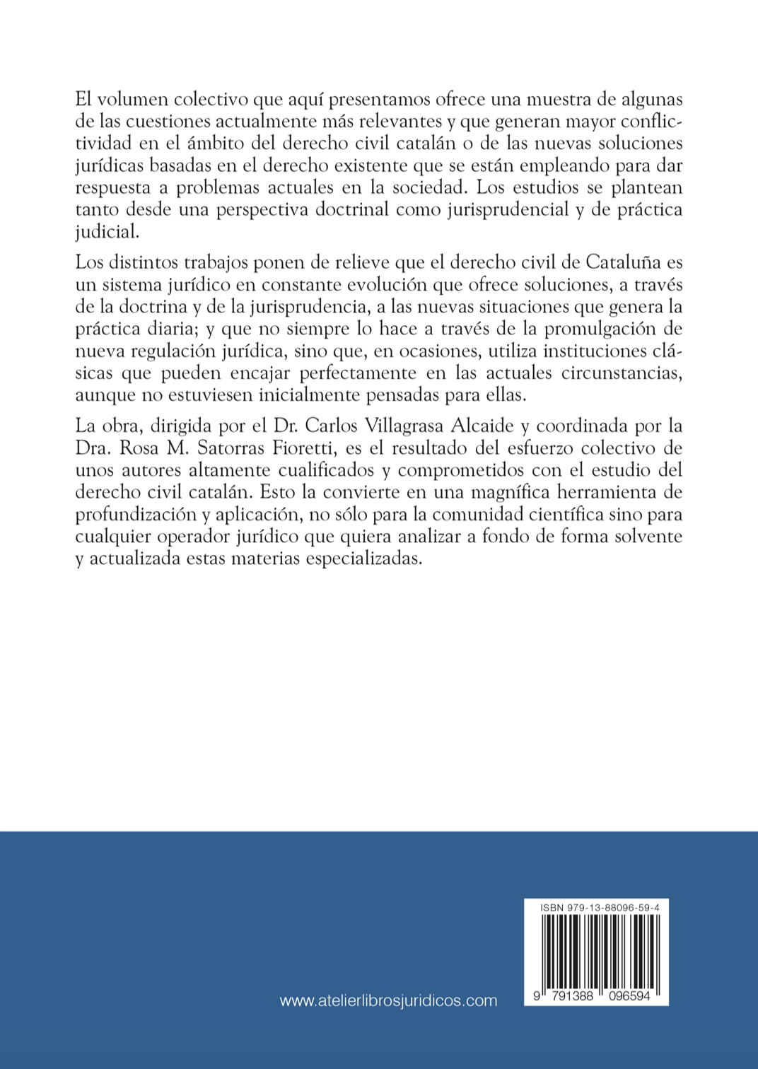 Esta obra colectiva ofrece una panorámica actualizada de algunos de los temas más controvertidos y dinámicos del derecho civil catalán, así como de las respuestas jurídicas —tradicionales o innovadoras— que se están utilizando para afrontarlos. Los estudios aquí recogidos abordan cuestiones prácticas y teóricas desde enfoques complementarios: la doctrina, la jurisprudencia y la experiencia judicial directa.