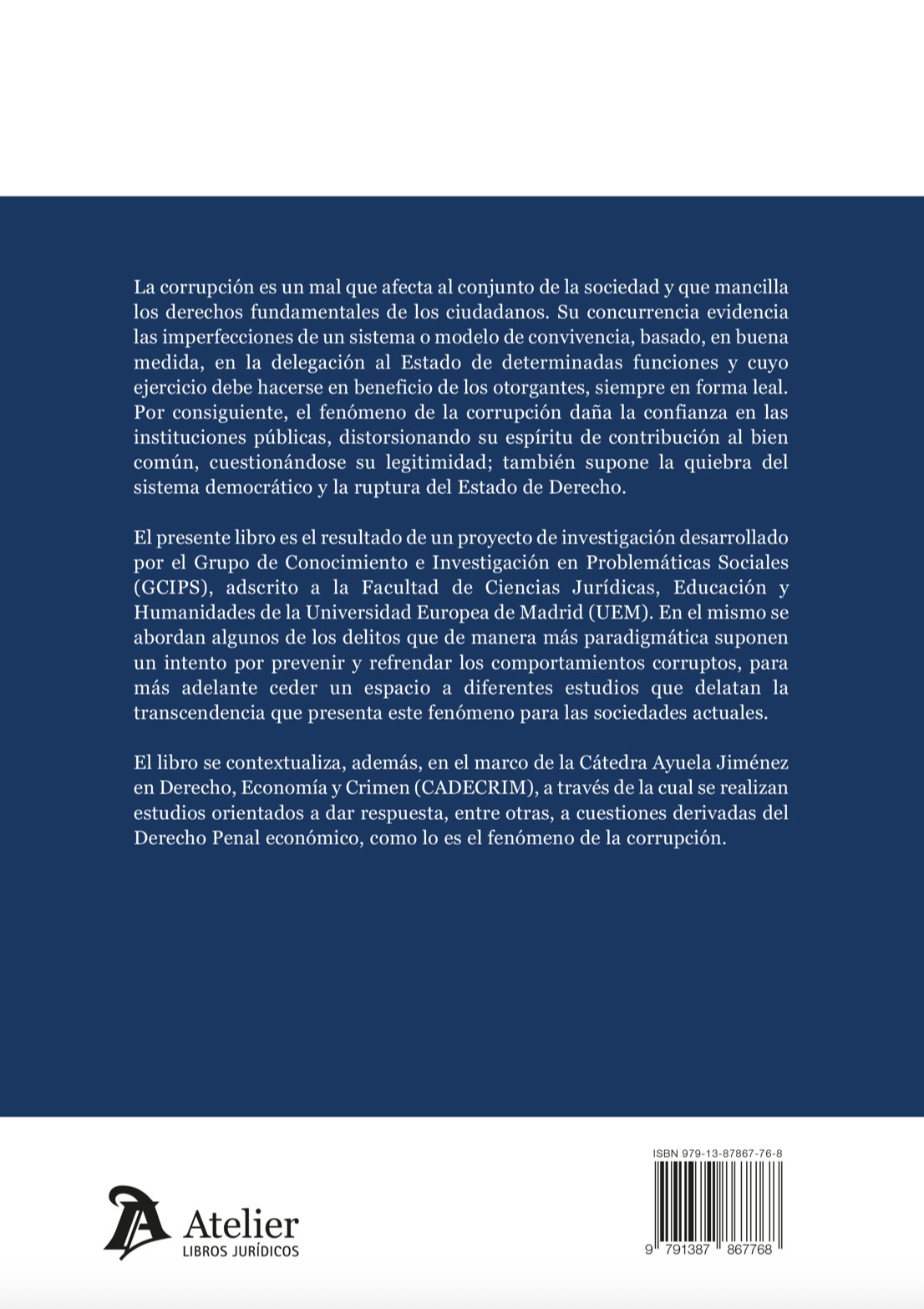 Este libro recoge los resultados de una investigación impulsada por el Grupo de Conocimiento e Investigación en Problemáticas Sociales (GCIPS) de la Universidad Europea de Madrid, en el marco de la Cátedra Ayuela Jiménez en Derecho, Economía y Crimen (CADECRIM). A través del análisis de delitos clave vinculados a la corrupción, y de estudios complementarios sobre su impacto en las sociedades contemporáneas, la obra ofrece una aproximación rigurosa y transversal al fenómeno desde la perspectiva del Derecho Penal económico.