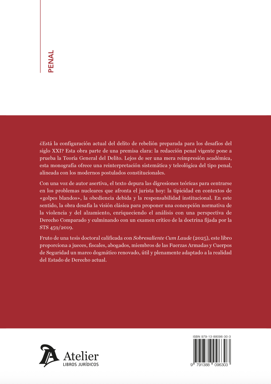 Fruto de una tesis doctoral calificada con Sobresaliente Cum Laude (2025), este libro ofrece a jueces, fiscales, abogados, y miembros de las Fuerzas Armadas y de Seguridad un marco dogmático renovado, útil y plenamente adaptado a la complejidad del Estado de Derecho actual.