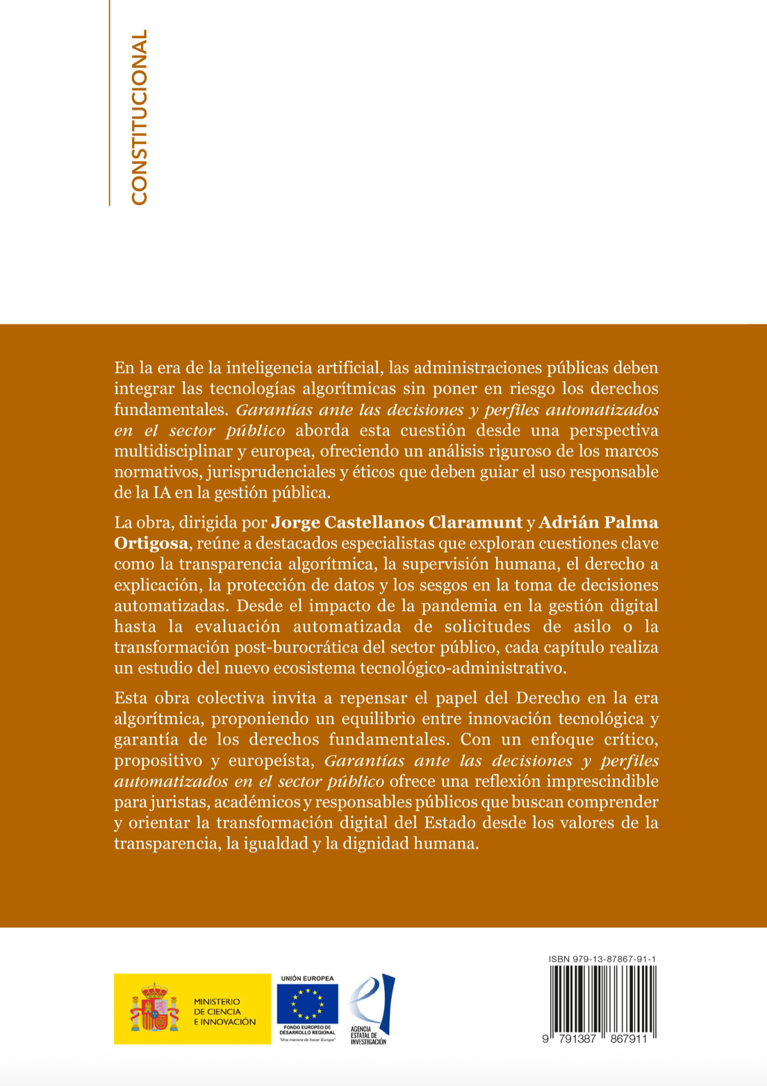 En la era de la inteligencia artificial, las administraciones públicas deben integrar las tecnologías algorítmicas sin poner en riesgo los derechos fundamentales. Garantías ante las decisiones y perfiles automatizados en el sector público aborda esta cuestión desde una perspectiva multidisciplinar y europea, ofreciendo un análisis riguroso de los marcos normativos, jurisprudenciales y éticos que deben guiar el uso responsable de la IA en la gestión pública. La obra, dirigida por Jorge Castellanos Claramunt y Adrián Palma Ortigosa, reúne a destacados especialistas que exploran cuestiones clave como la transparencia algorítmica, la supervisión humana, el derecho a explicación, la protección de datos y los sesgos en la toma de decisiones automatizadas. Desde el impacto de la pandemia en la gestión digital hasta la evaluación automatizada de solicitudes de asilo o la transformación post-burocrática del sector público, cada capítulo realiza un estudio del nuevo ecosistema tecnológico-administrativo. Esta obra colectiva invita a repensar el papel del Derecho en la era algorítmica, proponiendo un equilibrio entre innovación tecnológica y garantía de los derechos fundamentales. Con un enfoque crítico, propositivo y europeísta, Garantías ante las decisiones y perfiles automatizados en el sector público ofrece una reflexión imprescindible para juristas, académicos y responsables públicos que buscan comprender y orientar la transformación digital del Estado desde los valores de la transparencia, la igualdad y la dignidad humana.