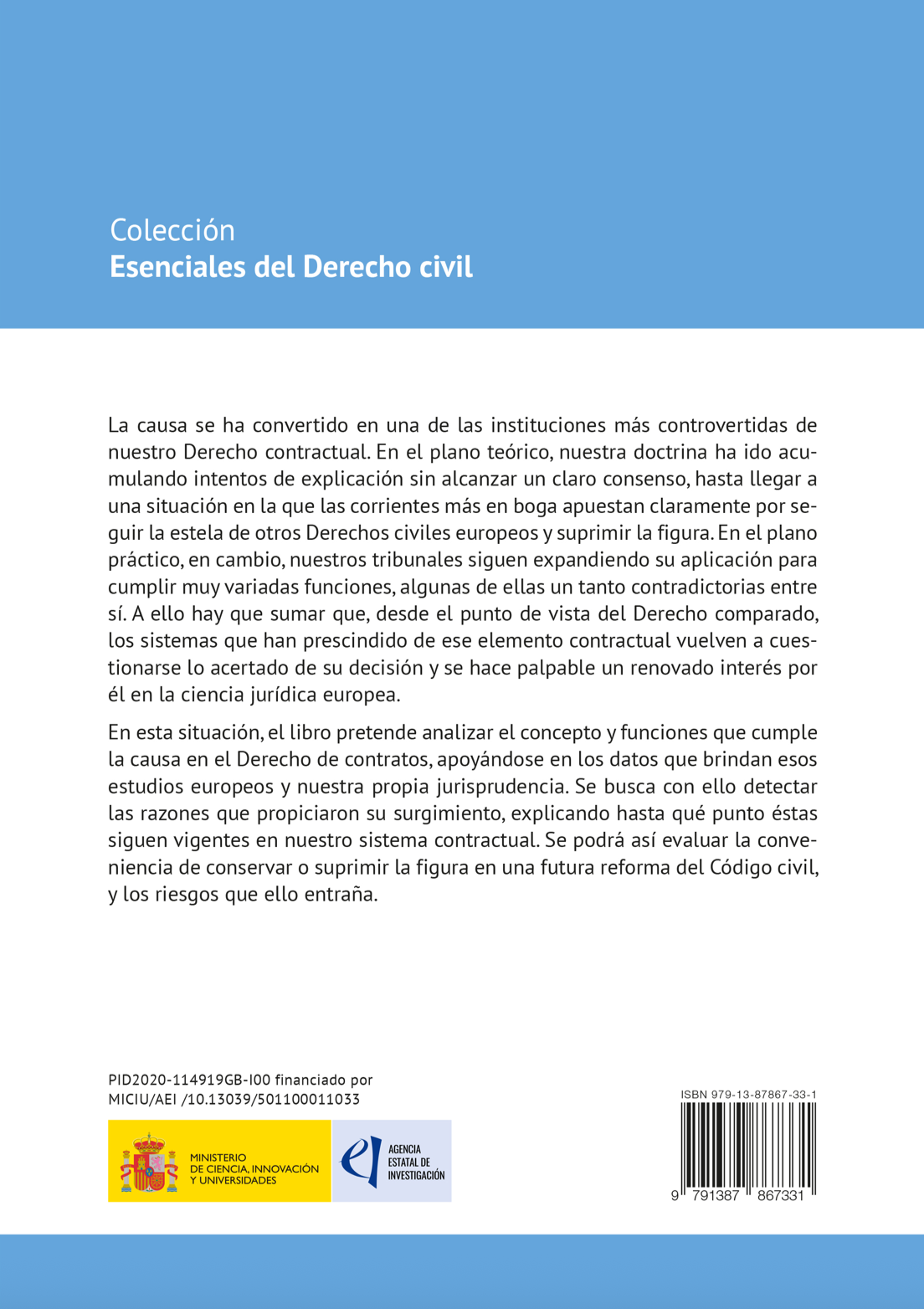 En este contexto, el presente libro se propone analizar el concepto y las funciones que desempeña la causa en el Derecho de los contratos, apoyándose tanto en los estudios europeos como en nuestra jurisprudencia. El objetivo es identificar las razones históricas que motivaron su surgimiento y determinar hasta qué punto siguen teniendo vigencia en nuestro sistema contractual actual. De este modo, será posible valorar la conveniencia de conservar o suprimir la figura en una futura reforma del Código Civil, así como los riesgos que dicha decisión podría implicar.