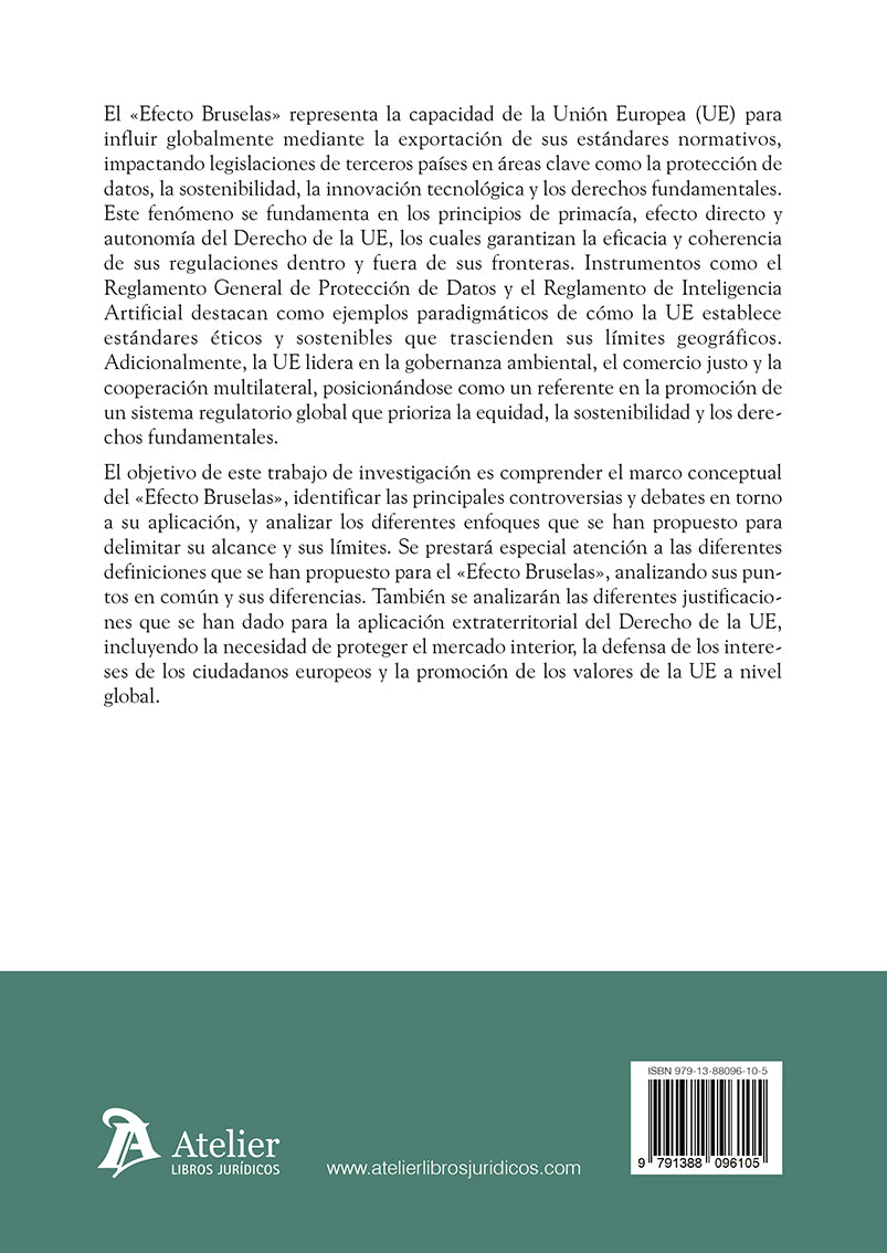 El estudio examina también los fundamentos jurídicos y políticos que sustentan esta extraterritorialidad normativa, así como los principales debates doctrinales sobre sus límites y legitimidad. Se analizan distintas definiciones del «Efecto Bruselas» propuestas en la literatura, así como las tensiones que genera entre soberanía nacional y uniformidad regulatoria global. Finalmente, se plantea si este fenómeno puede consolidar a la UE como referente en gobernanza normativa mundial o si corre el riesgo de suscitar resistencias frente a una expansión que, aunque basada en valores éticos y sostenibles, no siempre es percibida como neutral o consensuada.
