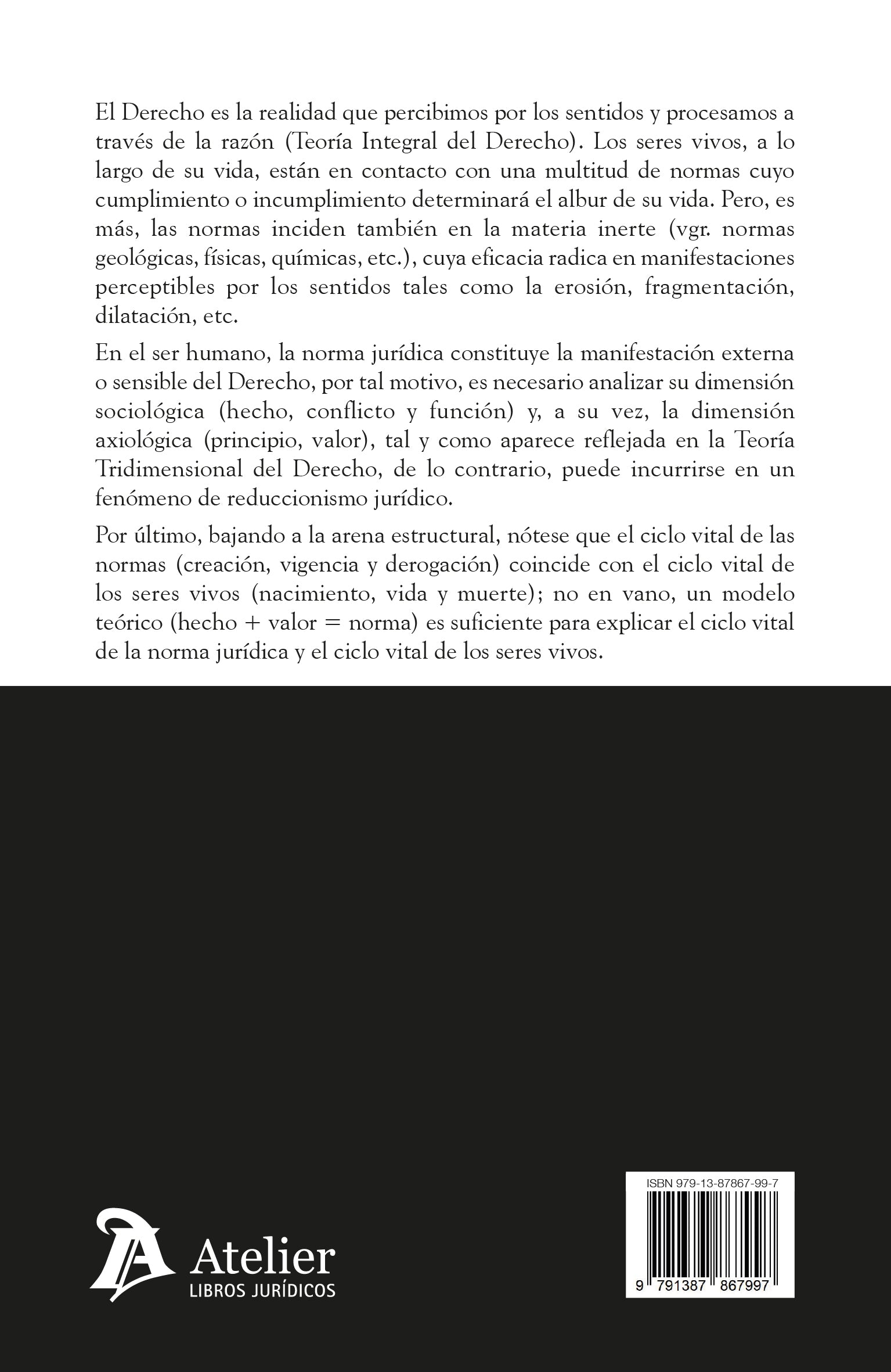 En el caso del ser humano, la norma jurídica representa la manifestación externa y tangible del Derecho. Por ello, su análisis requiere una aproximación que considere tanto su dimensión sociológica (hecho, conflicto y función) como su dimensión axiológica (principios y valores), tal como sostiene la Teoría Tridimensional del Derecho. Ignorar esta visión integral puede conducir a un reduccionismo jurídico que empobrece la comprensión del fenómeno normativo. Además, el ciclo vital de las normas —creación, vigencia y derogación— guarda un paralelismo significativo con el ciclo vital de los seres vivos —nacimiento, vida y muerte—, hasta el punto de que el modelo teórico “hecho + valor = norma” resulta suficiente para explicar ambos procesos de forma coherente.